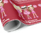 Customize this cute cheerleading squad wrapping paper with your high school name or other personalized text under the 3 cheerleader girls. A blonde, African American, and brunette teen wearing Santa Claus hats with a pink cheer uniform and pretty pom poms on a festive green background.