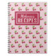 Cute cherry patterned pink and burgundy personalised recipe notebook.