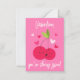 Cute and funny greeting cards for Valentine's day. Cherries and hearts illustration, and modern hand written script lettering "Valentine, you're cherry sweet", "from your friend". Bright pink colors. You can customize card with your text.