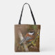 Ta med dig lite natur var du än är, med den här vismliga, vildlevande-temat-toten! En mörk, en överpressningsdag, ger en målarliknande effekt till mitt foto av denna Chestnut-Backed Chickadee, som var genomborrad på en av frukternas träd på vår bakgård och som inte hade någon större brådska att ta ett frö från det hängande matande station. Baserat på originalfotografiet av W.H. Sim. Alla Höger reserverade. Se mer på zazzle.com/walkswithnature