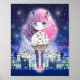 Cute chibi-flicka i en stad med stjärnor poster