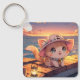 Cute Chibi Kitten at the Harbor Sunset – Whimsical Nyckelring