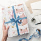 Cute Chic Boho Pastel Blush Grey Gold Fox Wrapping Paper