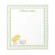 Destei's watercolor illustration of a yellow baby chick together with pastel Easter eggs in yellow, pink and blue colors. The edges have a green gingham pattern and the middle is white for easy writing. On the top is a personalizable text area for a custom title. Cute design for Easter and spring.