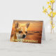 Chihuahua som framför sig pockar ett kort för anpassade hälsning i ökenscenen. Texten på framsidan lyder "Grattis på födelsedagen!" och texten på insidan lyder "Hoppas du har en underbar dag!" Text kan vara personlig.