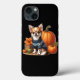 Den berömvärda Chihuahua sitta är en dekoration med pulserande höst, med pumpor och blommor av säsong orange, som är varmt klädd i en elegant trikå, perfekt för fallteman eller mysiga säsong-koncept.
