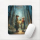 Två söta barn i skogen på vintern
