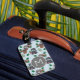 Adorable panda repeat pattern on monogrammed luggage tag.