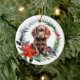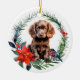 Cute Chocolate Cocker Spain Puppy Poinsettia Julgransprydnad Keramik