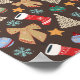 Cute retro christmas – brown holiday pattern featuring bows / ribbons, christmas trees, baubles, snowflakes, christmas stockings and stars.