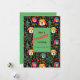 Cute little holiday dogs decorate this fun Christmas card in an adorable pattern for the Yuletide season. The doggies say "Have A Pawsome Christmas" to your pet loving friends and family members for them to enjoy. The design is inspired by the bright art of fauvism with a bit of a folk art touch. The black background emphasizes the great colors. There are also Christmas trees, festive greenery, and imaginative berries, leaves, and other decorations of the winter season in the picture. The back of the card is in a nice matching holiday green. All of the text, which is in red and black, can be changed. Be sure to edit the example family name and year.
