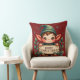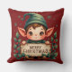 Cute Christmas Elf Holding Merry Sign Red Kudde
