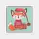 Adorable watercolor fox in festive red sweater and santa hat, sitting beside