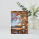 Cute Christmas Ghost Serves Cat in a Coffee shop Vykort
