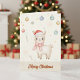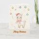 Adorable Christmas card featuring charming watercolor llamas wearing Santa hats and cozy scarves in soft pink and mint green. This whimsical design includes festive details like candy canes, ornaments, snowflakes, and stars on a cream background. Perfect for sending warm holiday wishes with a playful twist. The cute llama illustration appeals to kids and adults alike, making it ideal for family, friends, or anyone who loves adorable animal-themed Christmas cards.