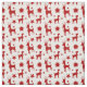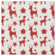 Fabric with a seamless repeating pattern with red silhouettes of stars and reindeer, a cute Christmas pattern