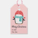 Cute christmas penguin på ljus rosa presentetikett
