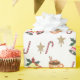 Festive Christmas Wrapping Paper with Hot Cocoa, Candy, and Bells.
