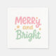 Modern pappra julservetter med söt och roligt med "Merry and Bright" i snålt pastel-rosa och grönt-avslappnad.