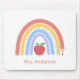 Lärarens musknapp har en söt pastellartad regnbåge med en penna och ett rött äpple. Den har en rå färgad. Anpassa till lärarens namn.