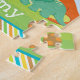 Färgstarka dinosaurivänner utformade med tropiska träd och solljus, med dinosaurieägg och avtryck klämmor på en baksida av stripessblått, grönt, gult och orange