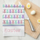 Den här söta kökshandduken i Påsk har rader av söta kaniner i vår-skuggor av rosa, akvarier och lavender. Anpassa med speciell text.