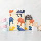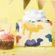 Tecknad bakterier med två hump kamelgrottor mot en färgad av öknar. Den här söta pappra inslagningen med kameror i marinblått, medelblått, orange och gult blir en stor slå med kamel fläkt.
