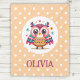 Personlig söt, färglös, vismisk uggla-design med polka dots på gultens bakgrund.