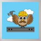 Cute Construction Worker Uggla med hård Tecknad Poster