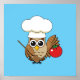 Ett exempel på en söt kock uggla som håller sin träsked och redo för att laga en röd tomatsås. En av de bästa hobbieserna och ockupationerna i världen är att laga mat där människor kan utforska och experimentera sin passion för mat. Denna kawaii-tecknad är en presentidé för människor som kärlek ska laga mat, mat älskare, veganer och hälsosam mat i älskare.
