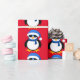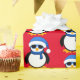 Kids Julafton träd-presentidé - Tekfärgad illustration av svart och vitt penguin med blå tomhatt, sol-glas och scarf.