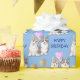 Två berömvärda Corgi-valpar har guld-ballonger och ett rosa hjärta på denna pappra födelsedagspresent. Tillsammans med valpen bilder är anpassningsbarnas text i marinblått. Allt placeras på en medelblå bakgrund. Cute!