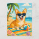 Cute Corgi i solglasögon på stranden i handflatan, sommarkort för postkorsning