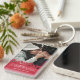 Nyckelkedja för personlig par med två olika foton av dig och din partner, en modern design för det röda kärleken, talesättet "Jag kommer att kärlek dig för alltid" och ditt namn.