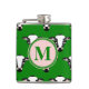 En mönster av stiliserad, söt ko ansikte på en modig grönt bakgrunden. I mitten av ett trendig, rosa roundel med grönt, anpassade monogram. Om du vill ha hjälp kan du kontakta mig via knappen " Fråga den här designern " direkt under den här texten.