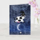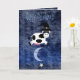 Magisk och söt blå och svart hälsningskort himmel anpassade Happy halloween med en söt tecknad i lycklig som leker med en häxa som hoppar över en lycklig toppen och stjärna - av Molly måne Design. Kortet illustreras inuti och ut.