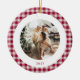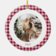 Cute Cranberry Red Gingham Play Anpassningsbar Photo Jul Helgdag Ceramic Ornamic