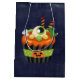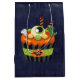En presentpåse med en Halloween-kaka med en stor ögonboll och annan sorterad inslag.