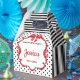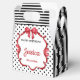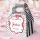 Elegant red bow and ribbon with polka dot, stripped background, birthday favors box, change the text to anything you want when ordering