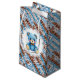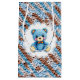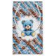 Blue and brown crocheted teddy bear baby shower small gift bag.