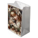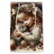 Gammal, gammaldags julklapp. En liten flicka som håller en kattunge på julafton kväll.