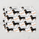 Cute lille Doxie hund mönster. Black and Tan Smooth Jackat Dachshund med ord "Doxie, Dachshund och Dackel (tyska för Dachshund).