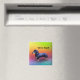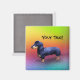 En svart dachshund står i det pulserande färg och väntar på sin vän.