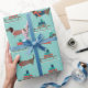 Papper julomslutning med en söt dachshund och en sled med presenter. Modern stil som är papper för hundälskare.