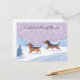 Det här söta julkortet har två livliga dachshundar som löper lyckligt genom vintern snö. Bild är i vattenfärgen stil, och överst står texten "Dachshunds through the snö", i manustypografi. En roligt och ett festligt sätt att skicka semesterhälsningar till familj och vänner.