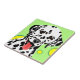 Färgkonst med vit Dalmatien med svarta prickar mot ljust grönt bakgrund och gult cirklar