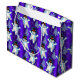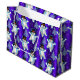 Den här mycket söta blåa och vita julklappen har en mönster av vita små snögubbar, dans i snö omgiven av silver Julgranar. Det finns ett mycket färgstarkt royal blått i bakgrunden.