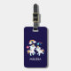 En personlig för bagagetagg på framsidan och din personliga information på baksidan. Designad med 2 söta dansunicorns med klarfärgat och färgstarkt svan och mane. En färgstark regnbåge med moln på varje sida ovanför huvudet. I andra inslag finns en liten blomma ett hjärta och några stjärnor. Mörkens lila - bakgrund.