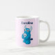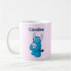 Kreta söta barn personlig mugg med en blå tecknad demon med kawaii skalle och galet utseende i pastel rosa och blått.