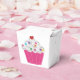 Den här lycklig lilla kakan är bunden till att slå din söta tand. Cupkaka har en rosa omslag, ett rött "körsbärshjärta" på ovansidan, rosa, orange, gult, lila, grönt och blåa hjärtsprinkler.